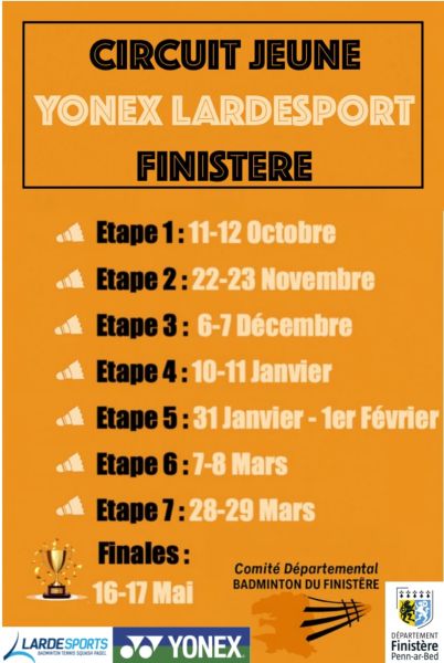Les Trophées Départementaux Jeunes (TDJ), ouverts à tous les compétiteurs du département et même au-delà. Les TDJ du Finistère sont organisés en circuit, le CircuitYonex Lardésport. La participation aux étapes du circuit permet de gagner des points pour participer à la finale qui a lieu en mai.